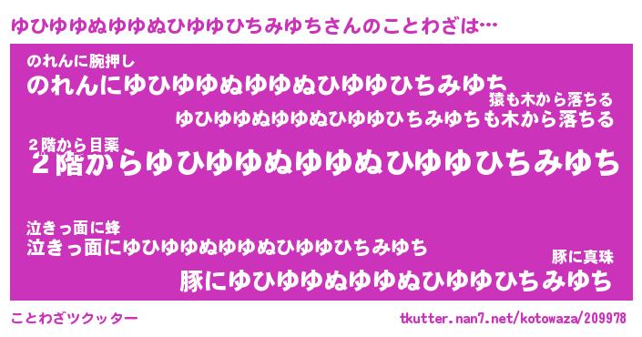 | 男性向けラノベタイトル風あだ名 | 『ゆひゆゆぬゆゆぬひゆゆひちみゆちの憂鬱』 |