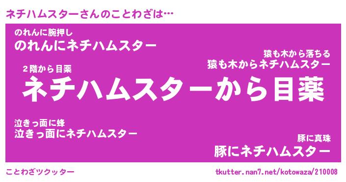 | 胡散臭い通販商品みたいなあだ名 | 『モテモテ間違いなし霊験あらたかなお札…その名も「ネチハムスター」』 |