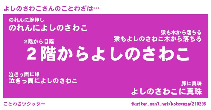 | 胡散臭い通販商品みたいなあだ名 | 『必ず成功する霊験あらたかなお札…その名も「よしのさわこ」』 |