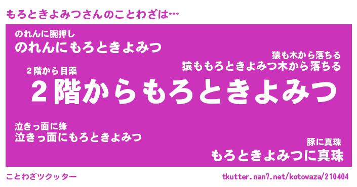 | 胡散臭い通販商品みたいなあだ名 | 『必ず成功するブレスレット…その名も「もろときよみつ」』 |