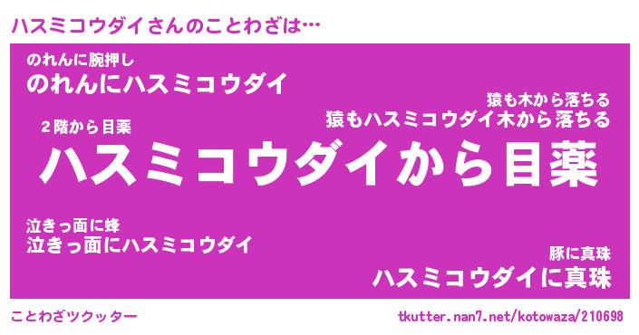 | ヘコむあだ名 | 『ハスふぇ~』『豆乳』『ハスを』 |
