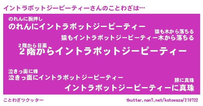 | 胡散臭い通販商品みたいなあだ名 | 『モテモテ間違いなし水晶球…その名も「イントラボットジーピーティー」』 |