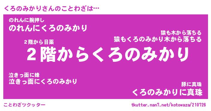 | 男性向けラノベタイトル風あだ名 | 『くろのみかりの憂鬱』 |