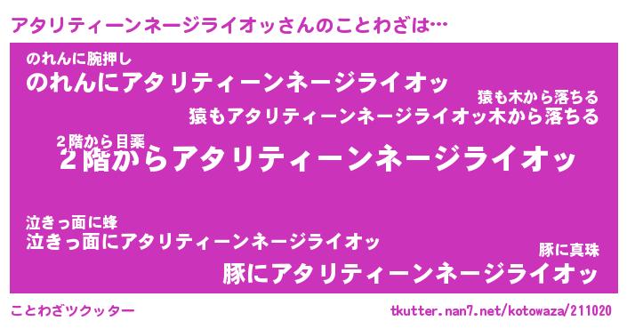 | ヒーロー風カッコイイあだ名 | 『スーパーアタリティーンネージライオッ』 |