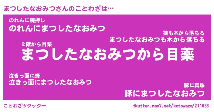 | 胡散臭い通販商品みたいなあだ名 | 『億万長者になれる水晶球…その名も「まつしたなおみつ」』 |