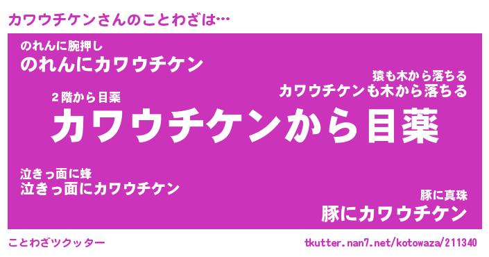 | ヒーロー風カッコイイあだ名 | 『スーパーカワウチケン』『黄金騎士カワ』 |