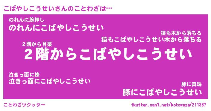 | 2回繰り返すあだ名 | 『こばこば』『ここばば』『うねうね』 |