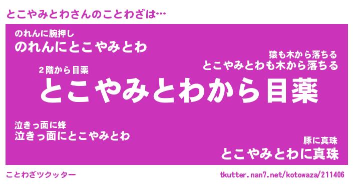 | 胡散臭い通販商品みたいなあだ名 | 『モテモテ間違いなし水晶球…その名も「とこやみとわ」』 |