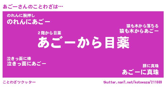 | ヘコむあだ名 | 『あごふぇ~』『豆乳』『あごぷりん』 |