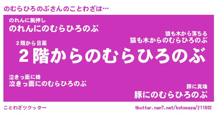 | 男性向けラノベタイトル風あだ名 | 『のむらひろのぶの憂鬱』 |