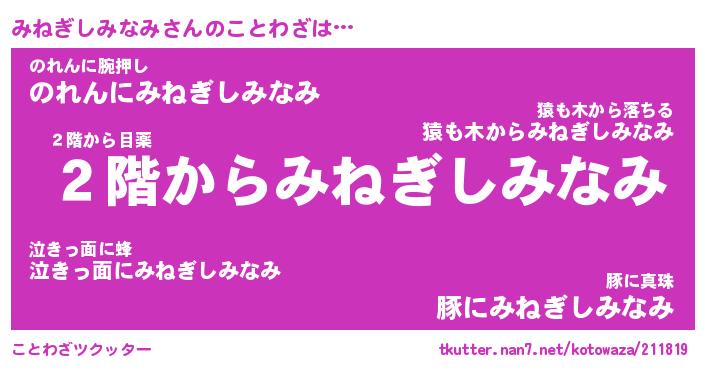 | 胡散臭い通販商品みたいなあだ名 | 『必ず成功する霊験あらたかなお札…その名も「みねぎしみなみ」』 |