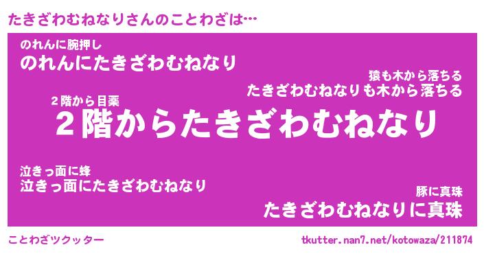 | 男性向けラノベタイトル風あだ名 | 『たきざわむねなりの憂鬱』 |