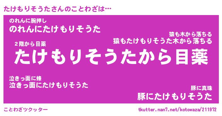 | 胡散臭い通販商品みたいなあだ名 | 『億万長者になれる霊験あらたかなお札…その名も「たけもりそうた」』 |