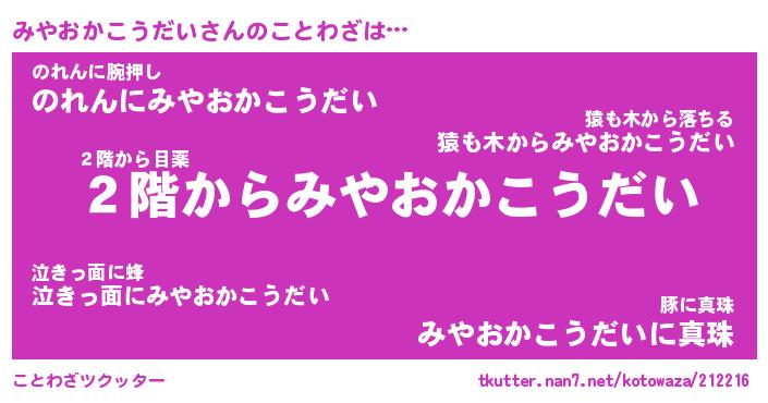 | 胡散臭い通販商品みたいなあだ名 | 『モテモテ間違いなし霊験あらたかなお札…その名も「みやおかこうだい」』 |