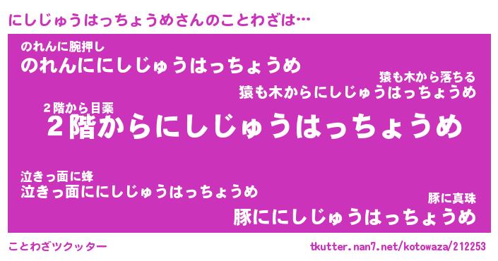 | 2回繰り返すあだ名 | 『にしにし』『ににしし』『うねうね』 |