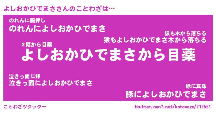 | 胡散臭い通販商品みたいなあだ名 | 『モテモテ間違いなし霊験あらたかなお札…その名も「よしおかひでまさ」』 |