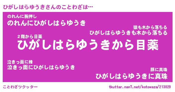 | 胡散臭い通販商品みたいなあだ名 | 『億万長者になれるブレスレット…その名も「ひがしはらゆうき」』 |