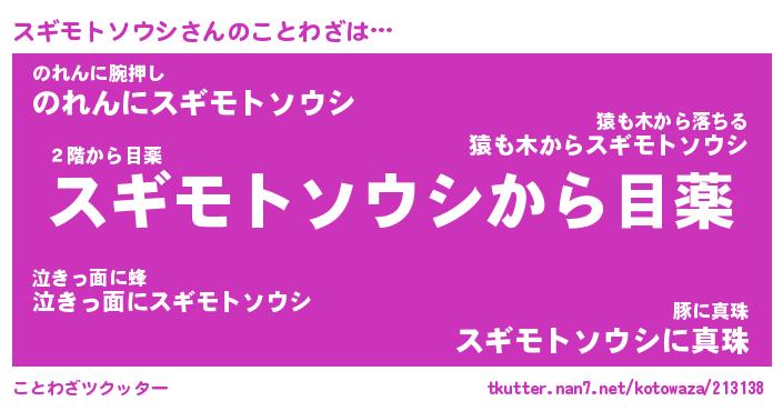 | 胡散臭い通販商品みたいなあだ名 | 『億万長者になれるブレスレット…その名も「スギモトソウシ」』 |