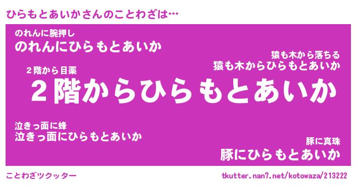 | ヘコむあだ名 | 『ひらふぇ~』『つくし』『ひらっぺ』 |