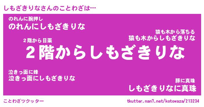 | 2回繰り返すあだ名 | 『しもしも』『ししもも』『ぬらぬら』 |