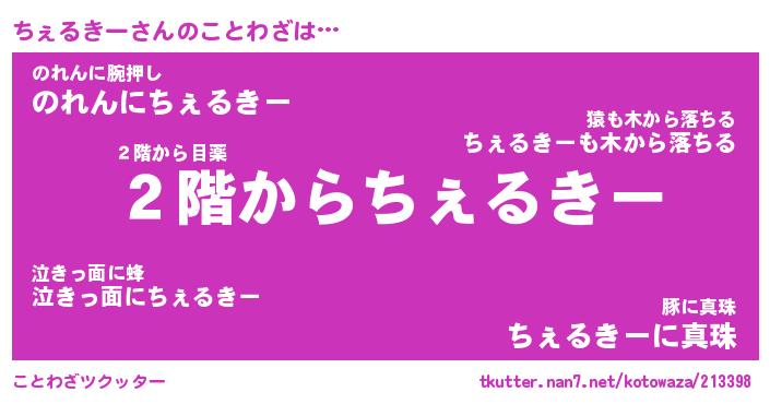 | 男性向けラノベタイトル風あだ名 | 『ちぇるきーの憂鬱』 |