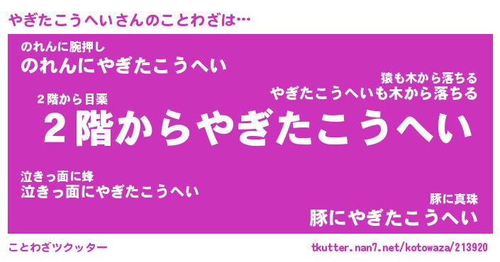 | 2回繰り返すあだ名 | 『やぎやぎ』『ややぎぎ』『いそいそ』 |