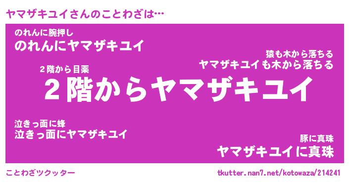 | 恥ずかしいあだ名 | 『プリティーヤマザキユイ』『ヤマっちょ』 |
