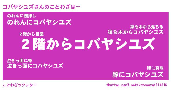 | 胡散臭い通販商品みたいなあだ名 | 『モテモテ間違いなし霊験あらたかなお札…その名も「コバヤシユズ」』 |