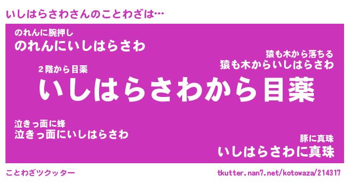 | ヘコむあだ名 | 『いしにー』『なまこ酢』『いしを』 |