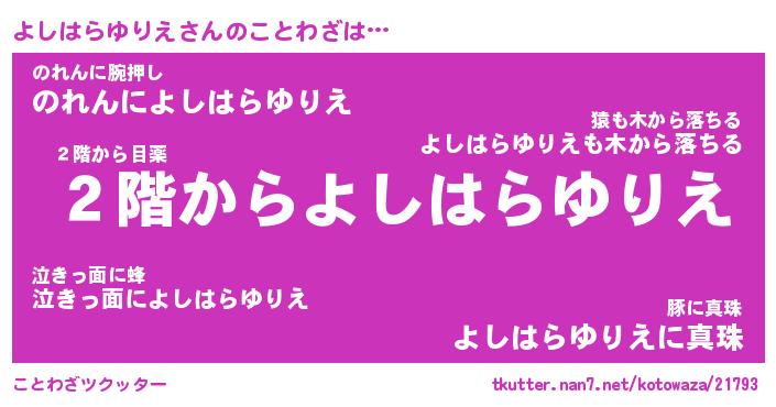 | 胡散臭い通販商品みたいなあだ名 | 『必ず成功するブレスレット…その名も「よしはらゆりえ」』 |