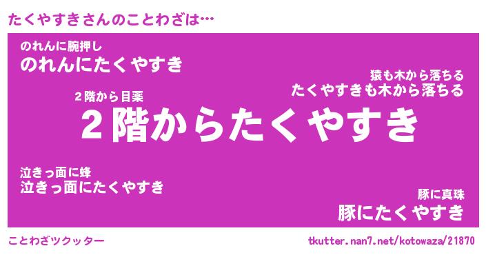 | 胡散臭い通販商品みたいなあだ名 | 『必ず成功する霊験あらたかなお札…その名も「たくやすき」』 |