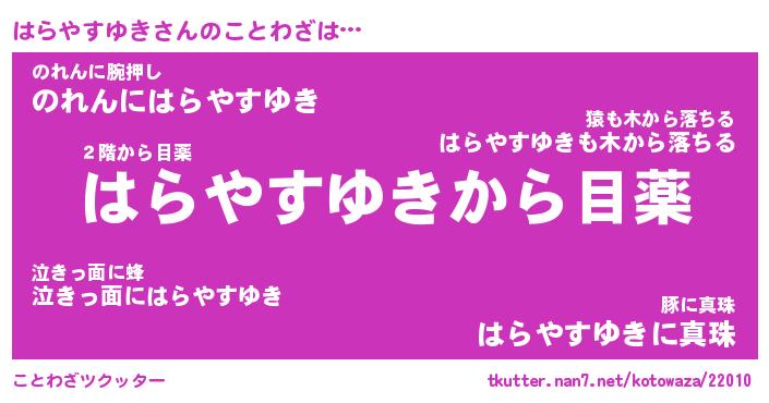 | 胡散臭い通販商品みたいなあだ名 | 『億万長者になれるブレスレット…その名も「はらやすゆき」』 |