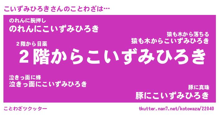 | 男性向けラノベタイトル風あだ名 | 『こいずみひろきの憂鬱』 |