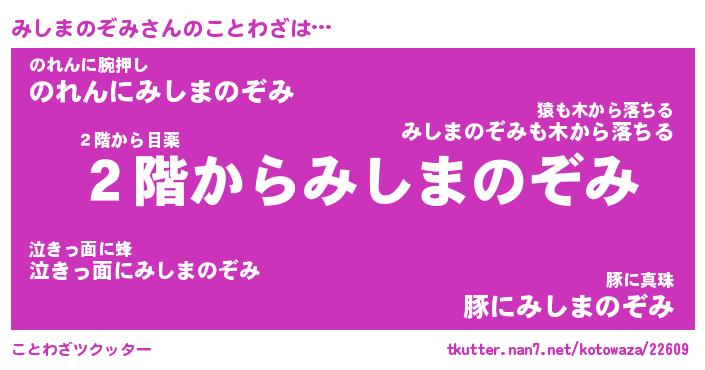 | 胡散臭い通販商品みたいなあだ名 | 『必ず成功するブレスレット…その名も「みしまのぞみ」』 |