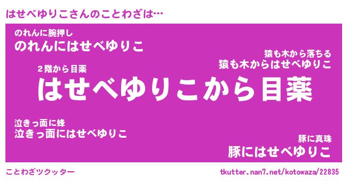 | 胡散臭い通販商品みたいなあだ名 | 『モテモテ間違いなしブレスレット…その名も「はせべゆりこ」』 |