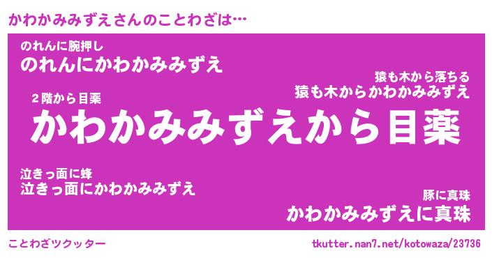 | 胡散臭い通販商品みたいなあだ名 | 『億万長者になれるブレスレット…その名も「かわかみみずえ」』 |
