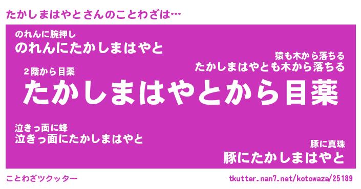 | ツイッター | たかしまはやとさんのツイッターID『namakemono_nyan』 |
