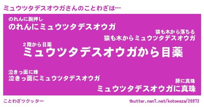 | 男性向けラノベタイトル風あだ名 | 『ミュウツタデスオウガアートオンライン』 |
