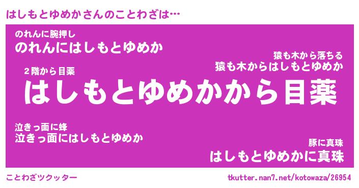 | 胡散臭い通販商品みたいなあだ名 | 『億万長者になれるブレスレット…その名も「はしもとゆめか」』 |
