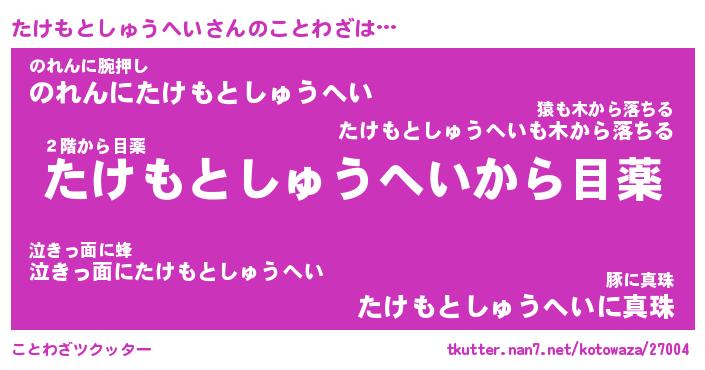 | 胡散臭い通販商品みたいなあだ名 | 『モテモテ間違いなし霊験あらたかなお札…その名も「たけもとしゅうへい」』 |