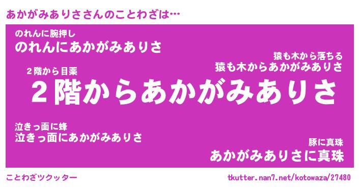 | 胡散臭い通販商品みたいなあだ名 | 『必ず成功するブレスレット…その名も「あかがみありさ」』 |