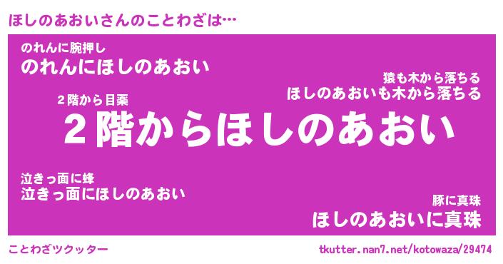 | 胡散臭い通販商品みたいなあだ名 | 『モテモテ間違いなし霊験あらたかなお札…その名も「ほしのあおい」』 |