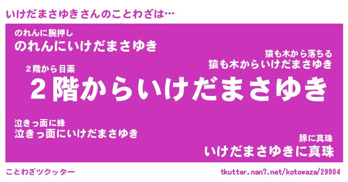 | ヘコむあだ名 | 『いけにゅー』『つくし』『いけお』 |