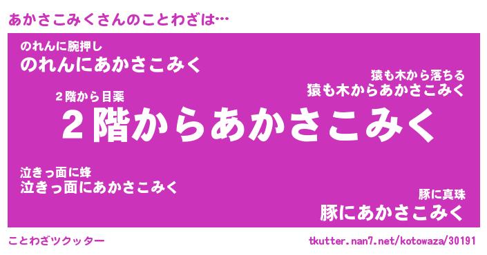 | 胡散臭い通販商品みたいなあだ名 | 『必ず成功する水晶球…その名も「あかさこみく」』 |