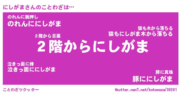 | 男性向けラノベタイトル風あだ名 | 『にしがまの憂鬱』 |