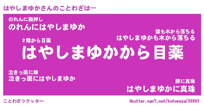 | ツイッター | はやしまゆかさんのツイッターID『namakemono_idle』 |