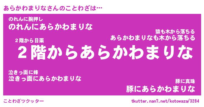 | 男性向けラノベタイトル風あだ名 | 『あらかわまりなの憂鬱』 |