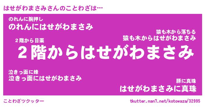 | 胡散臭い通販商品みたいなあだ名 | 『必ず成功する霊験あらたかなお札…その名も「はせがわまさみ」』 |