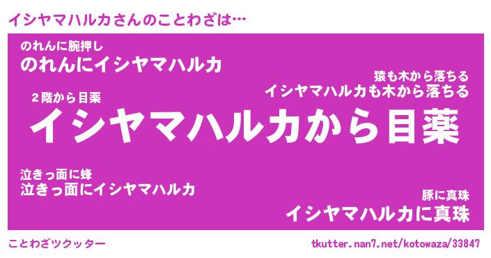 | 恥ずかしいあだ名 | 『プリティーイシヤマハルカ』『イシちん』 |