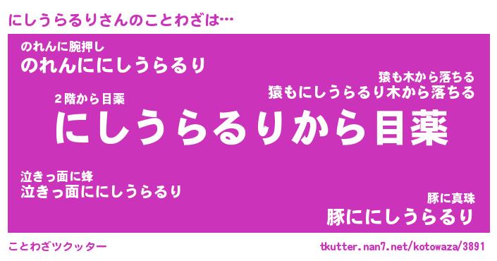 | 胡散臭い通販商品みたいなあだ名 | 『億万長者になれる霊験あらたかなお札…その名も「にしうらるり」』 |